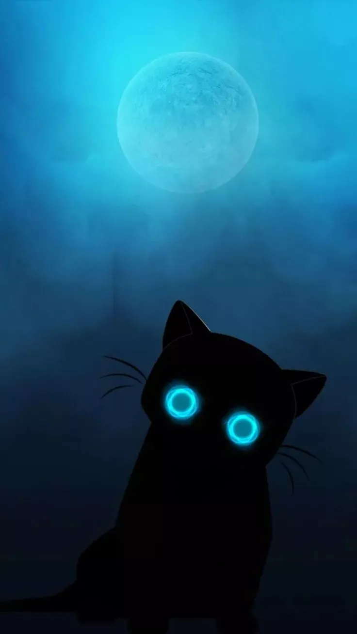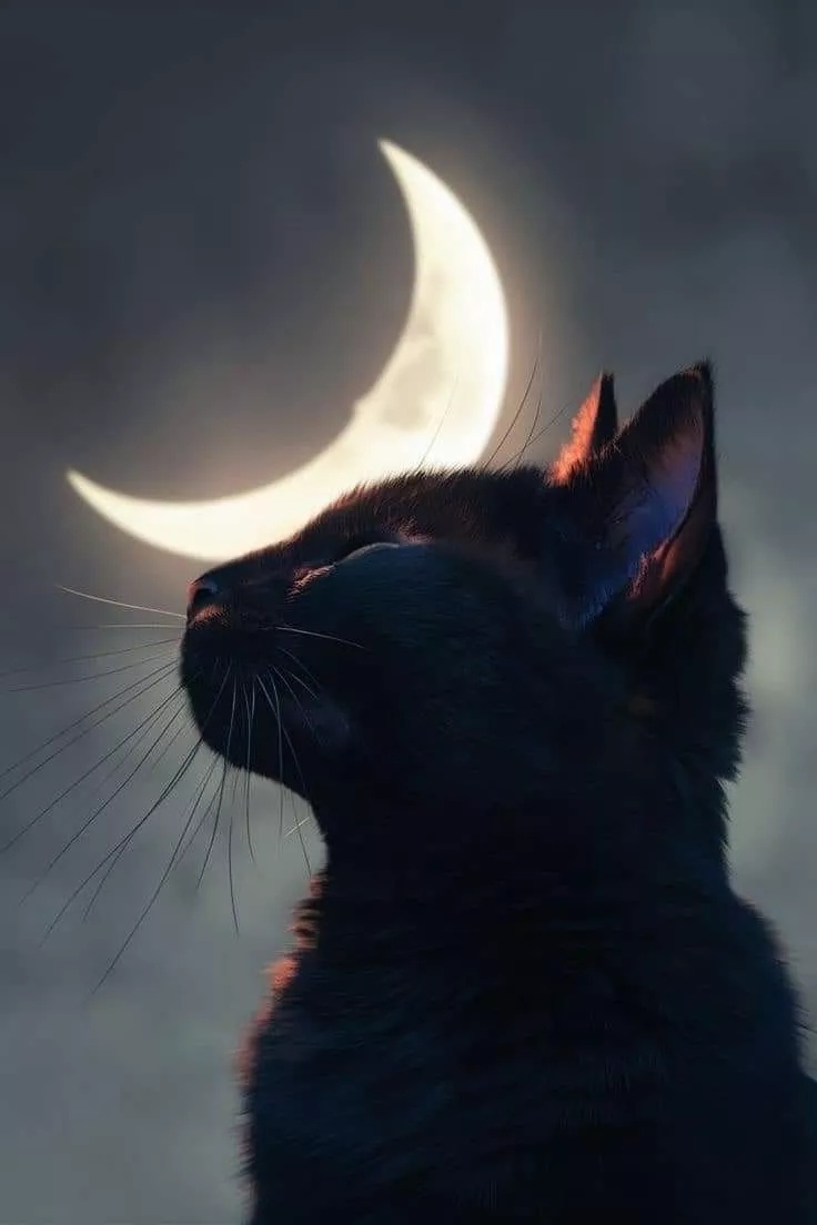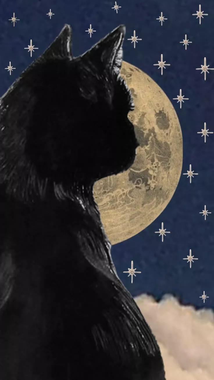 Black Cat Looking At The Moon Wallpapers