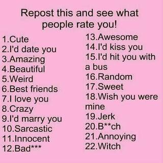 I'm nice,kind,Beautiful,strong,smart And I like to make bracelets and I like to make Edits with imvu in it And I like to do my nails and I like to do my own hair I'm Taken /No Kids/Still In School/I have 1 Sister /i'm 14 Years Old